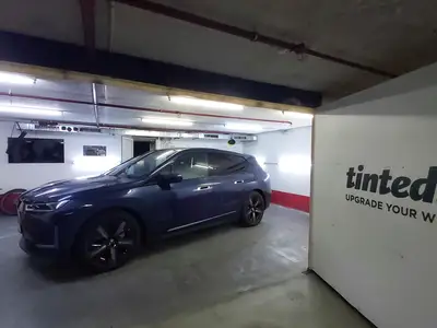 Pe acest iX i20 in Phytonic Blue Metallic am aplicat folie auto LLumar CTX05 pe geamurile spate si luneta, si LLumar AIR80 pe geamurile fata. Alegerea foliei ceramice CTX pentru un vehicul electric premium nu este intamplatoare: fara nicio componenta metalica in compozitie, CTX nu interfereaza cu senzori, camere, radare sau sistemele de asistenta integrate in si in jurul geamurilor. AIR80 fata asigura protectie UV si respingere termica fara nicio alterare vizuala. La Tinted, montajul pe un BMW iX se face cu precizie maxima, fara demontarea panourilor de usi — un standard pe care il respectam la fiecare masina.