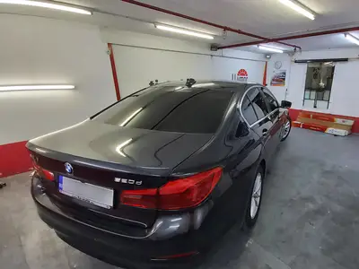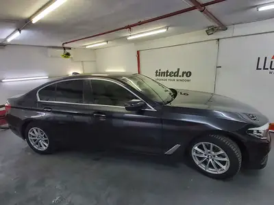 Pe acest G30, am aplicat LLumar ATR05 pe toate geamurile — alegand efectul fumuriu maxim pentru a sublinia caracterul sobru si elegant al acestei combinatii. Seria 5 G30 este o masina executiva prin excelenta, iar geamurile aproape negre ale foliei ATR05 adauga exact nivelul de discretie si intimitate pe care il cere un astfel de automobil. LLumar ATR05 blocheaza 99% din UV si respinge eficient caldura. Montajul realizat la Tinted este realizat fara demontarea elementelor.