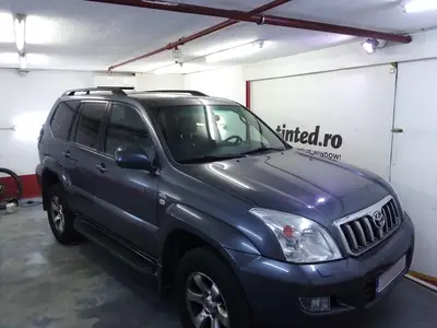 Acest Toyota Land Cruiser Prado generatia 120, in culoarea Dark Blue Mica Metallic, a primit un pachet complet de protectie solara pentru geamuri.