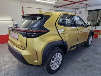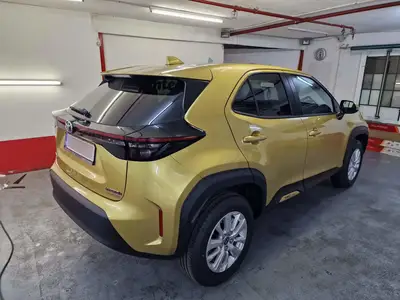 Pe caroseria Brass Gold Metallic, contrastul creat de folia auto este foarte echilibrat si pune in evidenta liniile moderne ale modelului Yaris Cross. Aplicarea foliei a fost realizata profesional, fara bule sau imperfectiuni.